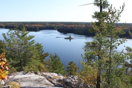 There are many excellent hiking trails accessible from the lodge. The view from the hilltop behind the lodge is shown on the left (approx 20 minutes). For the more adventurous the trail to Silver Peak starts at the bottom of Bell Lake (approx 4-5 hours). Killarney Provincial Park offers many trails within a short driving distance.