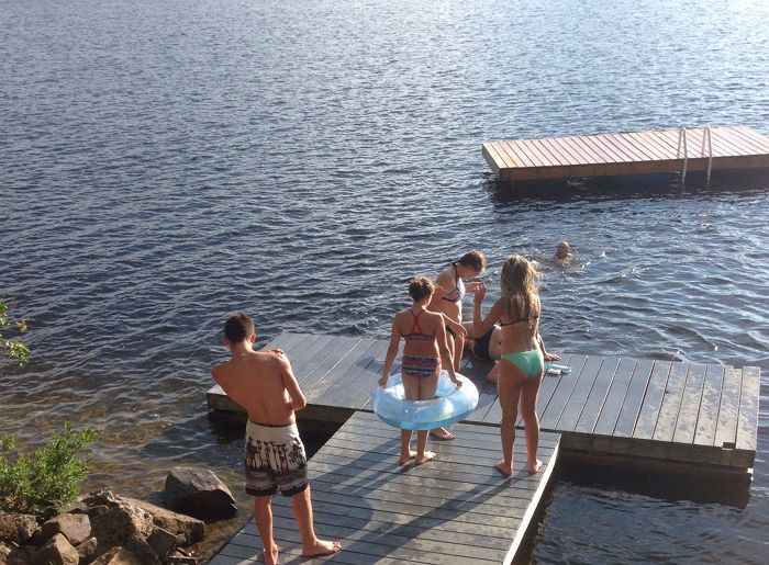 Bell Lake provides excellent swimming during July and August. The sauna deck is the social hub on the main island where people gather to chat or watch stunning sunsets. There is a small beach if you have young children in your group.